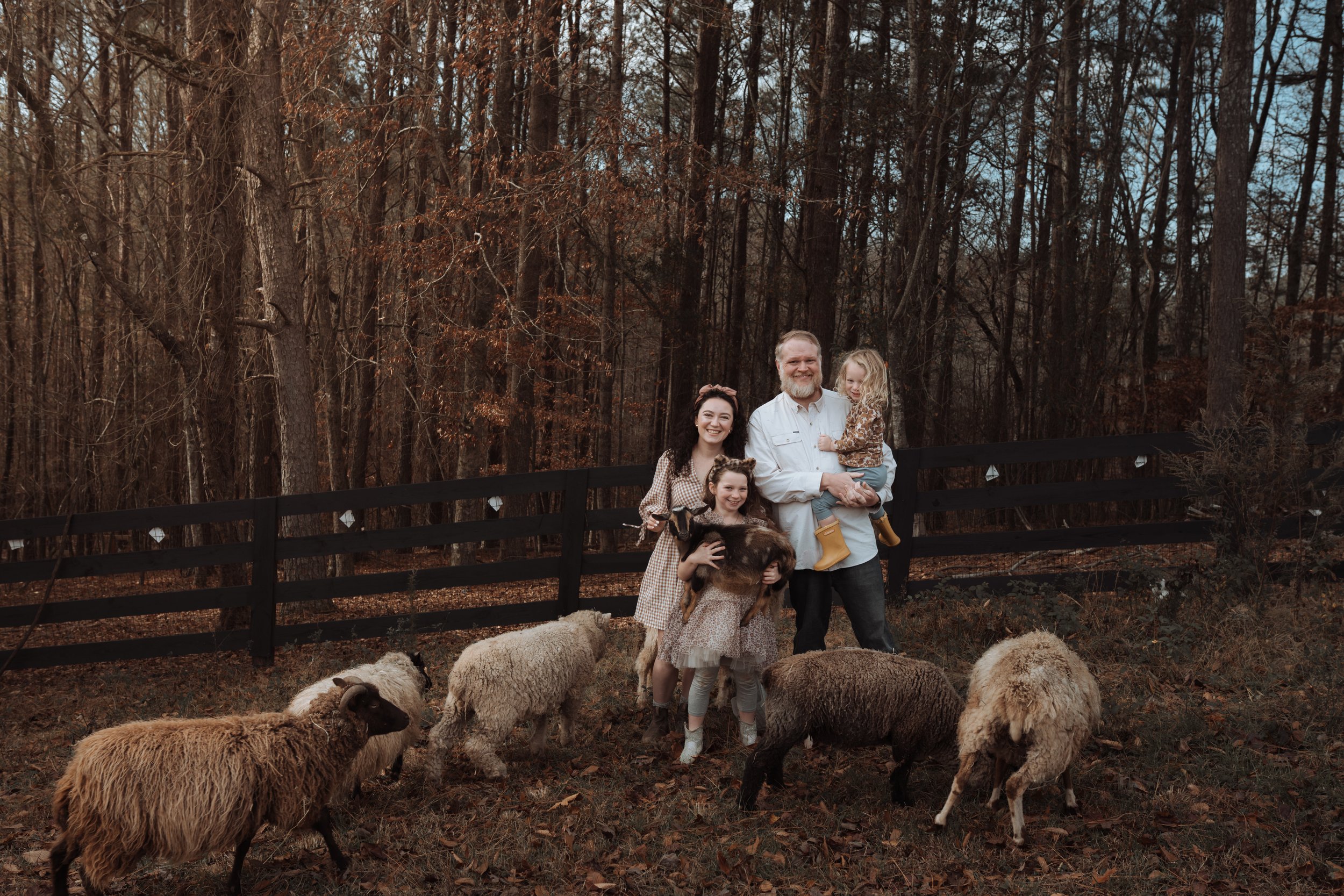 We are first generation farmers who are learning to lean into the earth everyday. Georgia natives, we (Jason and Ashley) live in Canton, GA, with our two children and a bunch of farm animals. When Jason is not wrangling goats, he is a real estate attorney. When Ashley is not herding sheep or chasing her kids, she is a licensed professional counselor for children.
