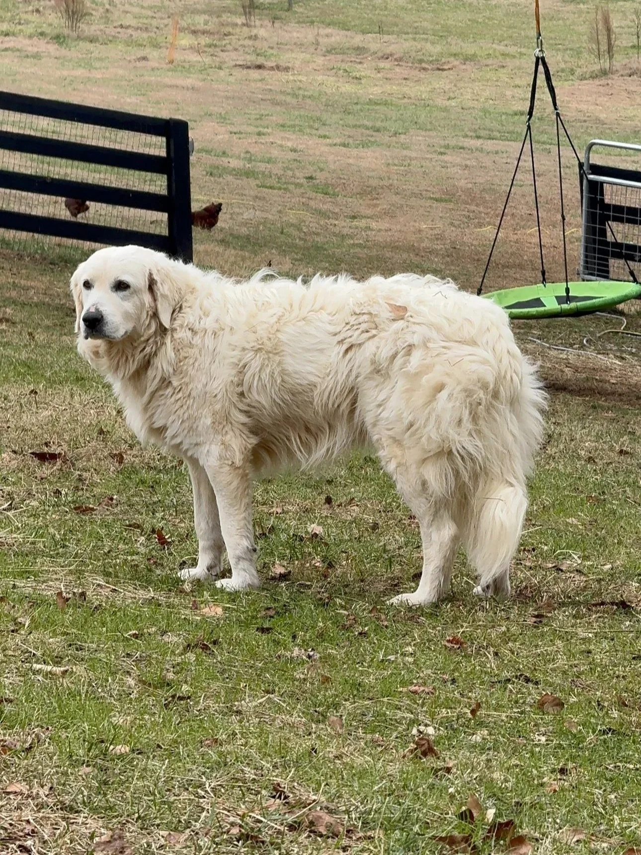 Tundra is a Great Pyranese/Italian Maremma Sheepdog mix. She is middle aged and amazing at her job! While she is more reserved than Blue Bear due to her age, she is incredibly loyal and sweet. She is usually seen lounging in the sun by the chicken coop taking a nap. Together, Blue Bear and Tundra protect our vulnerable animals from predators like owls, hawks, coyotes, and bobcats.