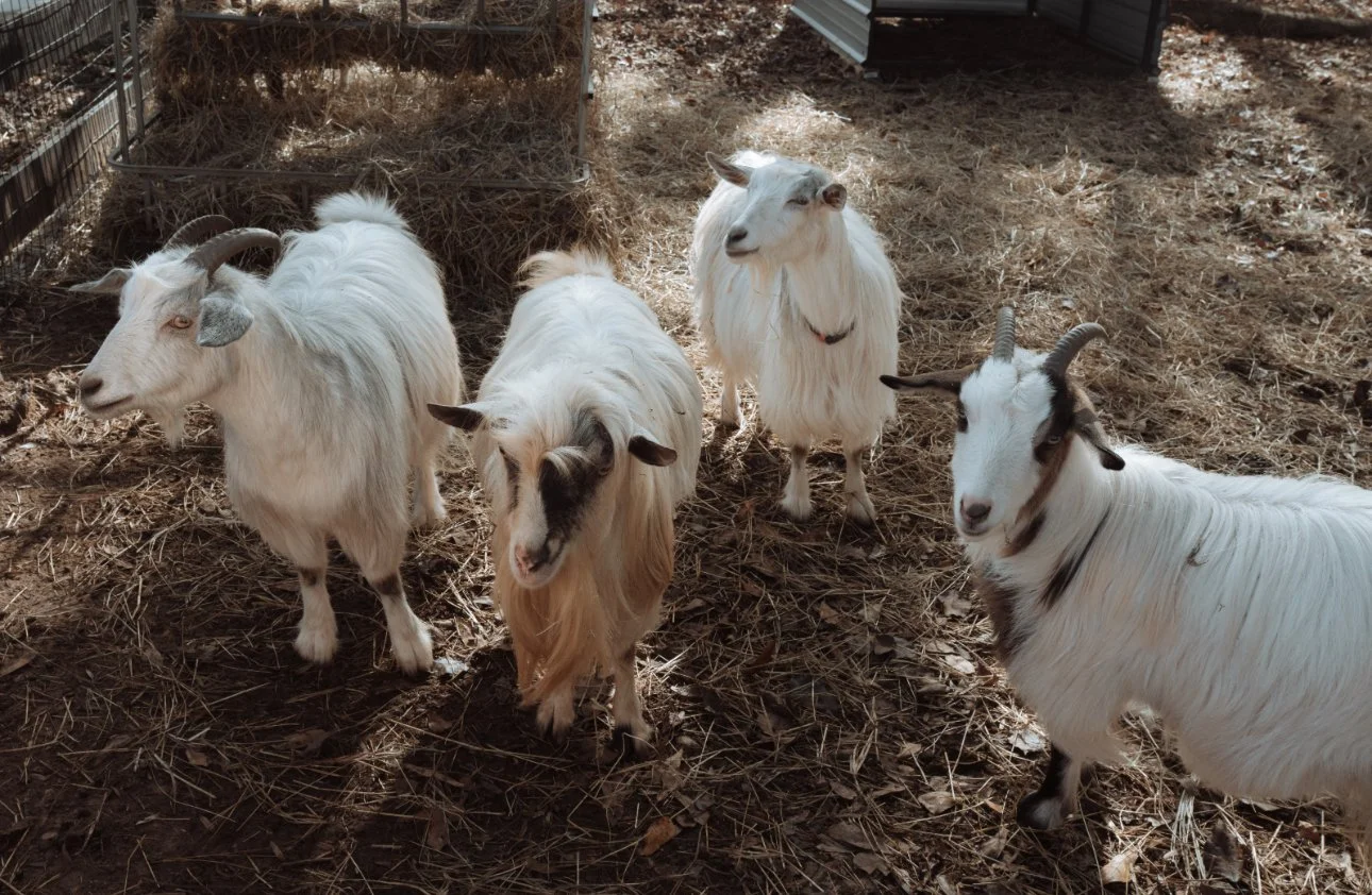These fluffy gems are Mini Silky Fainting goats. This means that they have a long, silky coat and when startled, they freeze up (faint). Mini silkie fainters are bred from Tennessee Fainting goats, which are a recovering heritage breed, and crossed with Nigerian Dwarf goats, which were formerly a heritage breed. They are known for their friendliness and easy-going temperament. We have a small herd of five: Charlie, Harry, Diglet, Delilah, and Sally.
