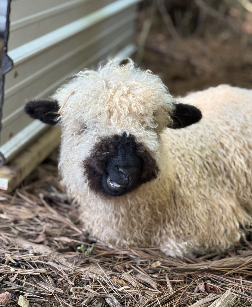The sweetest creatures on our farm are definitely our sheep. We have a mixed flock of Babydoll, Shetland, Valais, and dairy sheep. The sheep are sheared twice a year, which means their wool is gently removed via a haircut. We process some of their wool here at the farm and spin it into yarn. The rest of the wool is sold by the ounce. People use it for their gardens, for yarn, for felting, and even insulation.